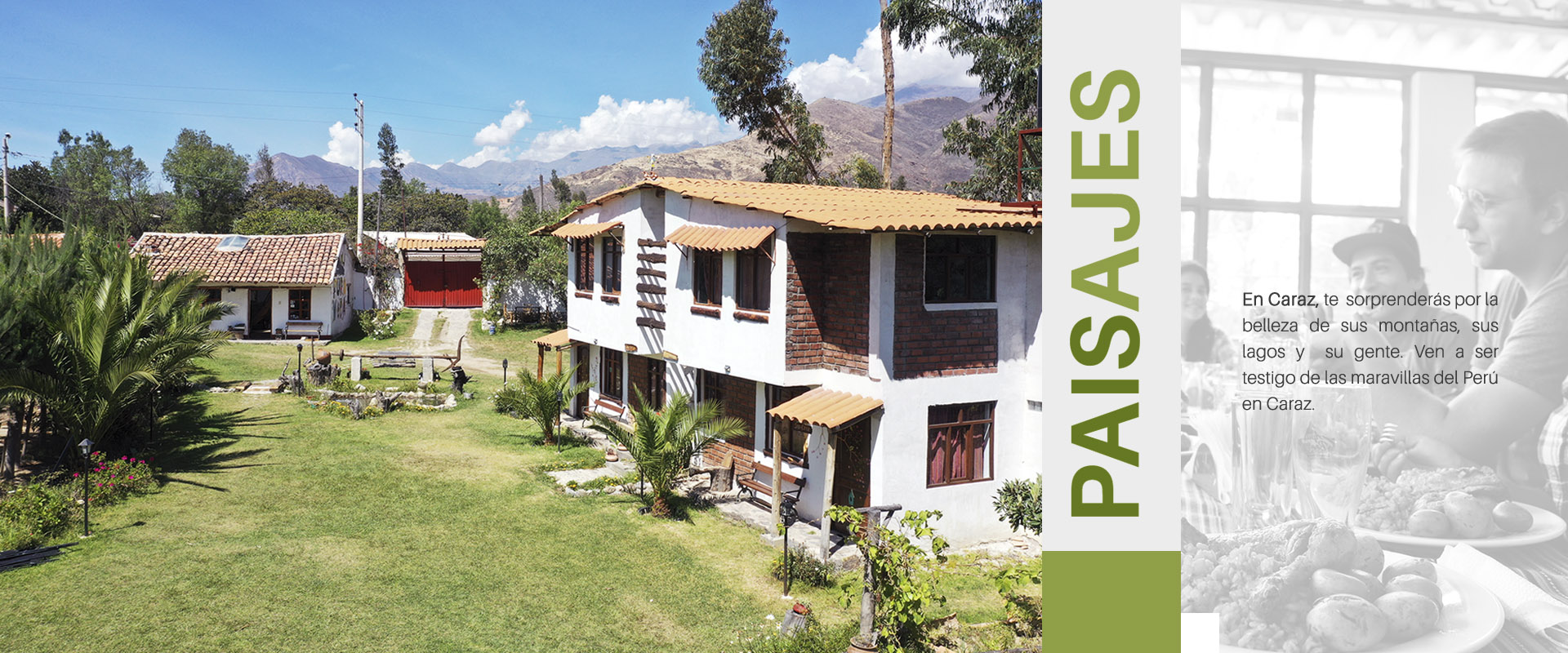 APU EcoLodge Está rodeada por la Cordillera Blanca y Cordillera Negra, APU EcoLodge le ofrece una experiencia de campo en el corazón de los Andes. APU EcoLodge es perfecto para disfrutar de la familia y los niños, así como para las personas que disfrutan la aventura, porque Caraz es el centro de aventura. Usted puede relajarse en el jardín leyendo un libro o puede disfrutar de senderismo en las montañas blancas, mientras que sus hijos jugar con los animales, corren por nuestros campos o se divierten en los columpios.